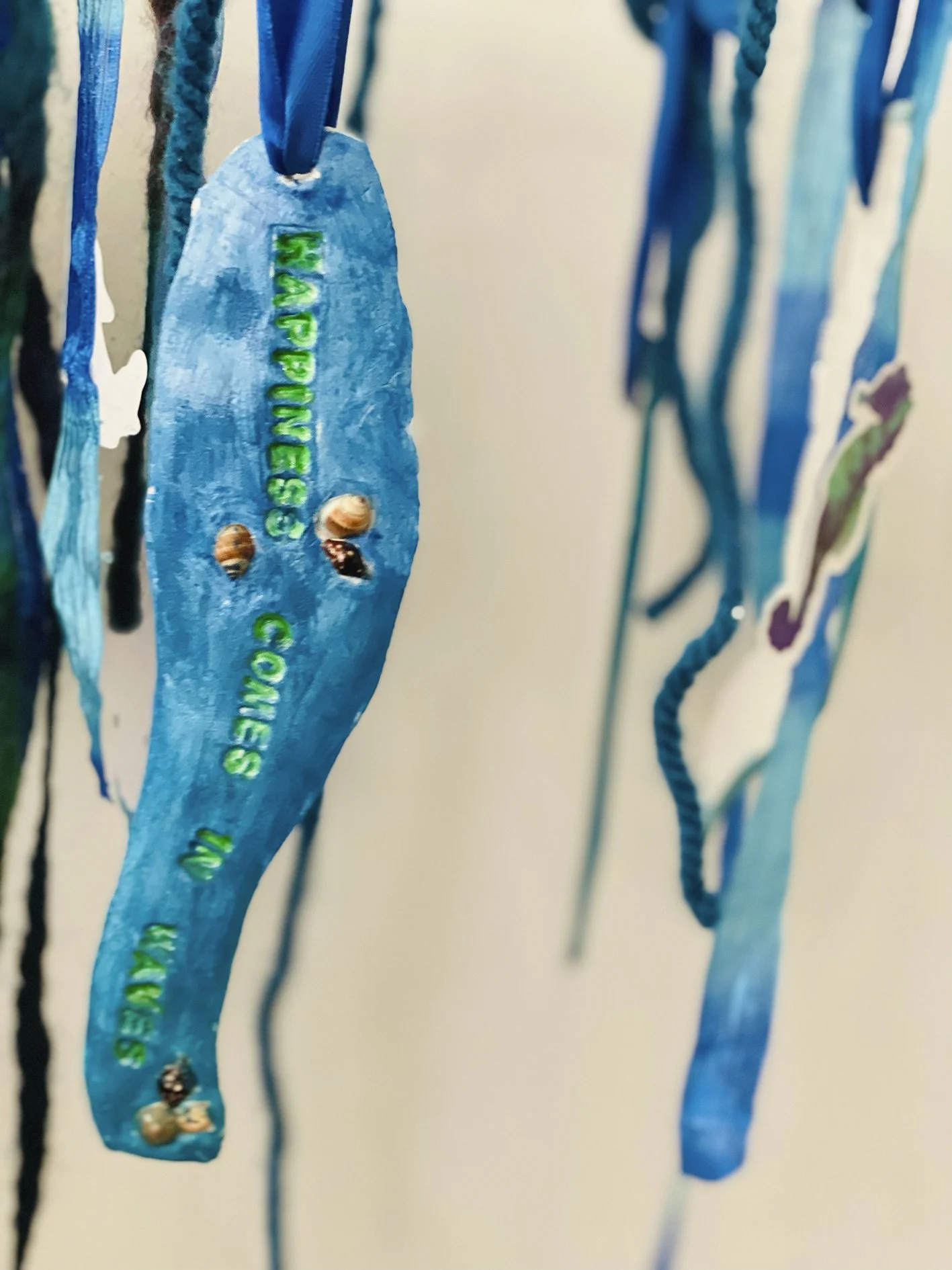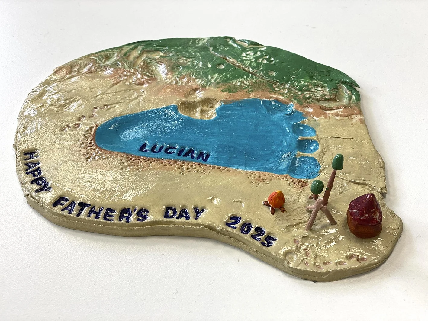 Together, they created intricate island stories in collage and clay, and a shared clay mobile inscribed with messages of power and hope — even imprinting babies’ feet into the clay as part of the narrative. By welcoming the realities of parenthood into the creative space, the group found resilience through belonging, restoration and creative flow, making this weekly time a vital, grounding pause.